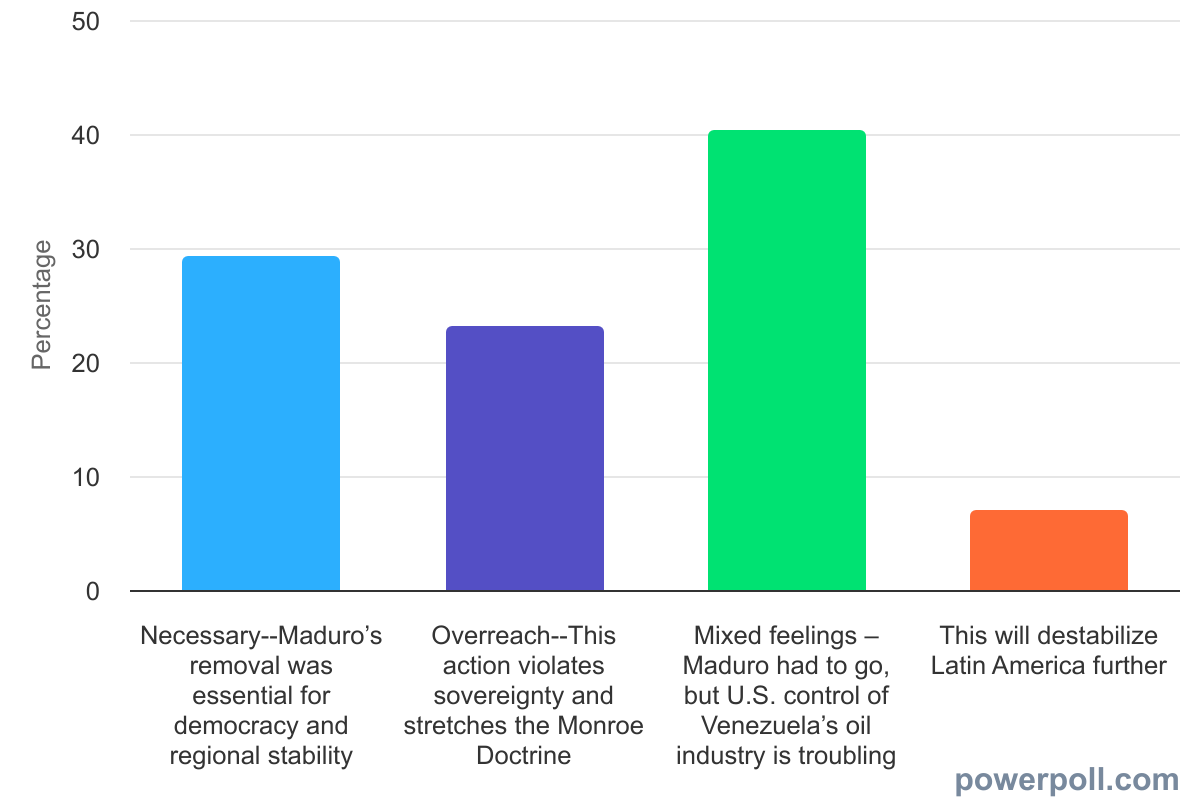 As the Poll suggests, this is a complex issue. The largest group landed right in the middle—agreeing Maduro needed to go, but uneasy about what comes next. Even supporters are side-eyeing the long-term implications.
